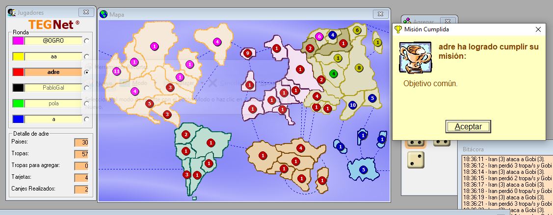 PabloGal se suicido, le quedaba 1 pais con 4 fichas y siguio atacando hasta quedar en 1