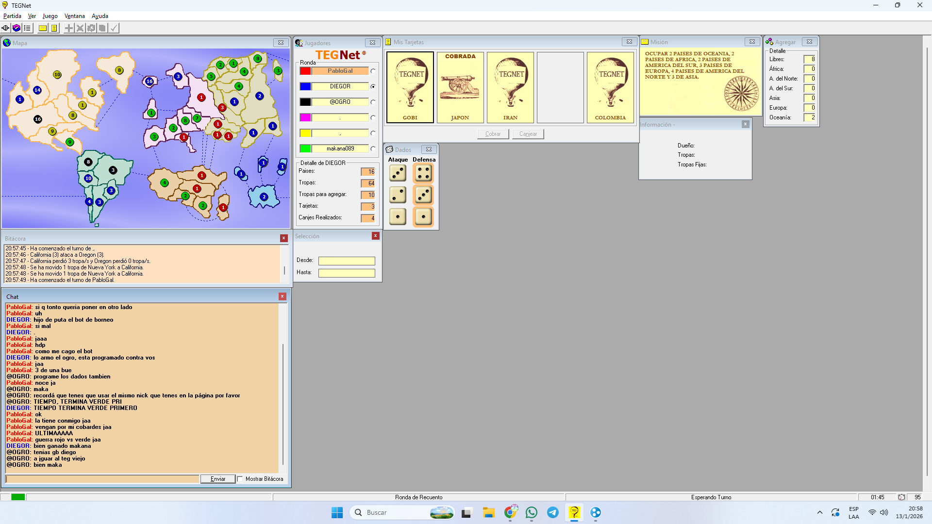 PabloGal puso más de 4 fichas en un mismo continente, más precisamente en Asia. Fue sin querer.